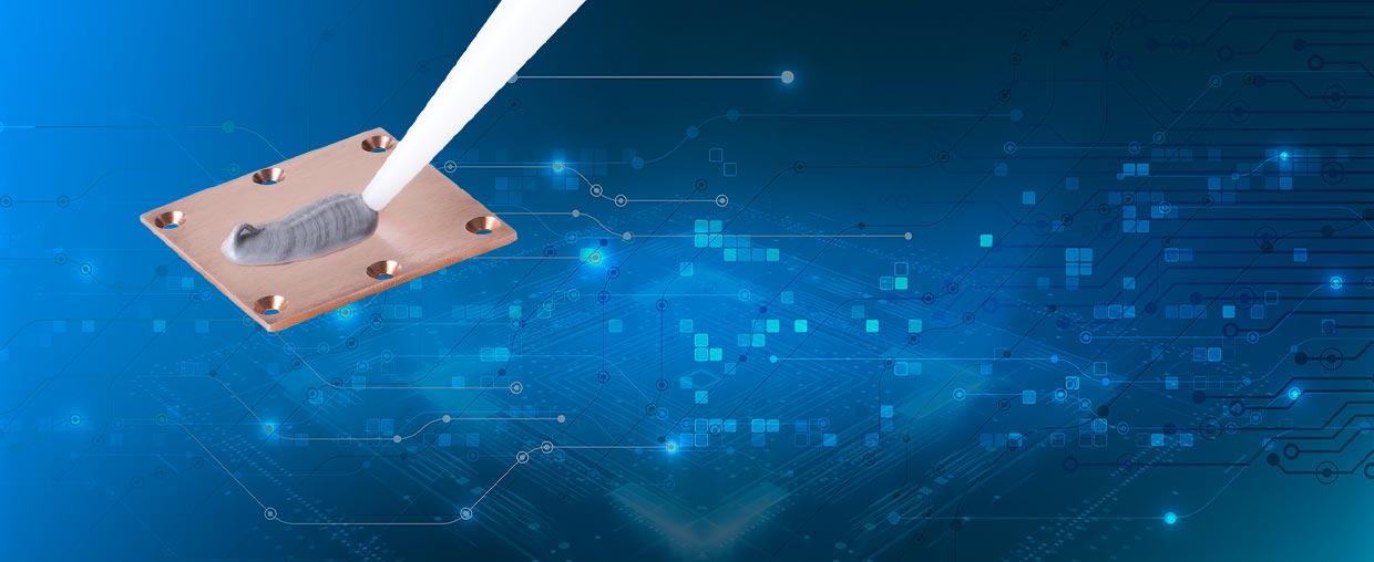 Gli adesivi termoconduttivi. Sono disponibili sia mono che bicomponenti, vulcanizzabili a temperatura ambiente o con polimeralizzazione accelerata dalla temperatura. Il gradiente termico viene minimizzato da un eccellente contatto ottenuto grazie alle ottime proprietà adesive ed elevata conducibilità termica. Inoltre diviene superfluo l’utilizzo di viti, molle o altro sistema meccanico di fissaggio. Le tolleranze meccaniche vengono compensate senza esercitare pressione. Gli adesivi vengono utilizzati in applicazioni compatte e di peso contenuto. Materiali con diverso coefficiente di dilatazione termica possono facilmente essere uniti con un affidabile giunto termico.